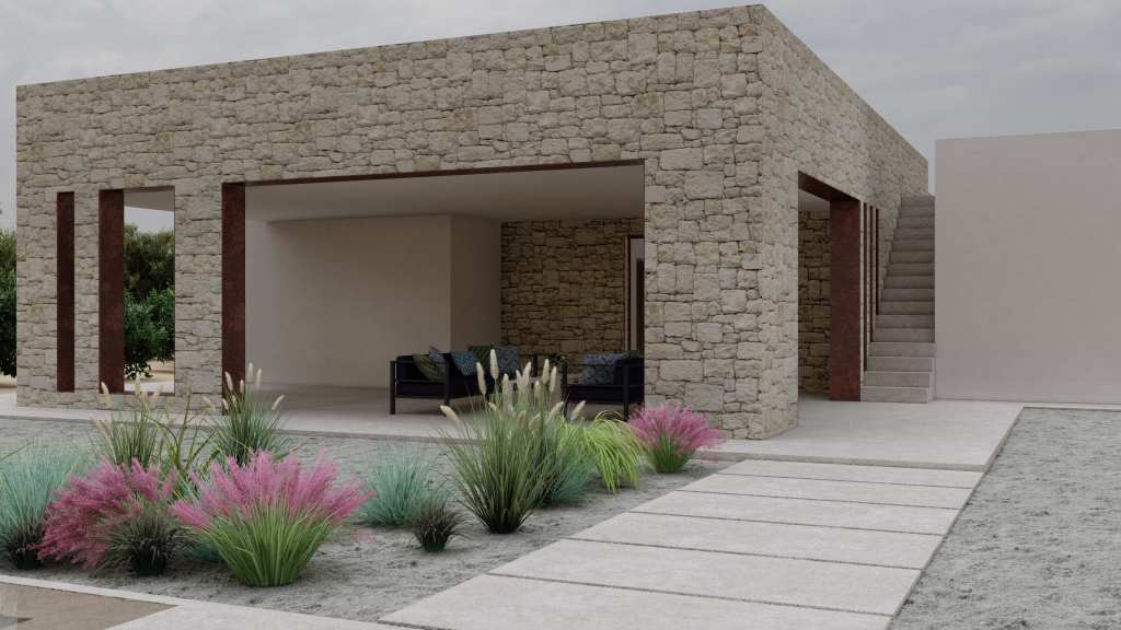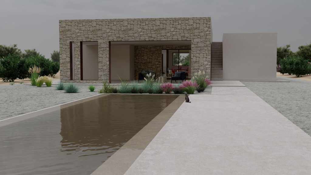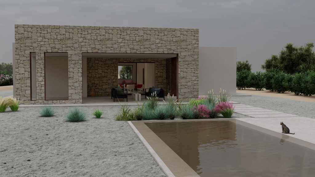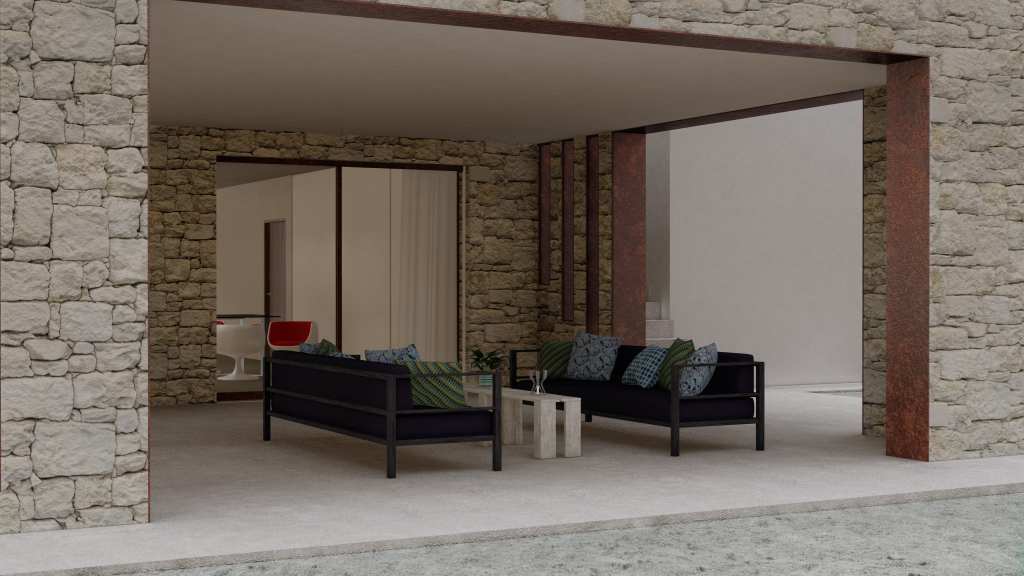 L’esterno, con la veranda e la piscina, è stato suddiviso in diverse aree: una per il relax e una seconda a bordo piscina per banchetti e cocktail.