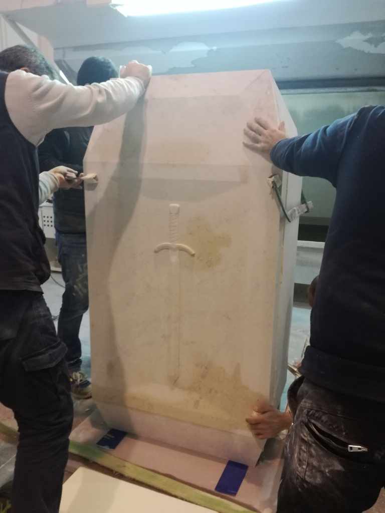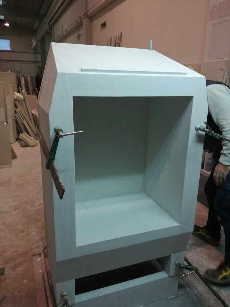 L’impianto architettonico è semplice: l’aula rettangolare termina con il presbiterio leggermente rialzato, è bastato questo allo studio per approntare la progettazione di uno splendido altare marmoreo.